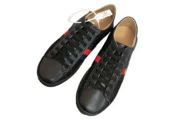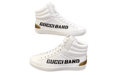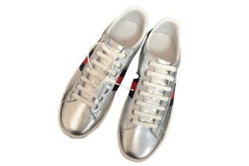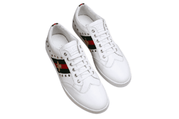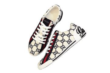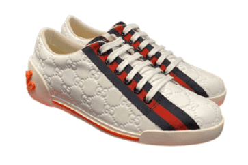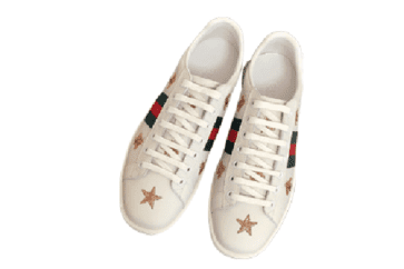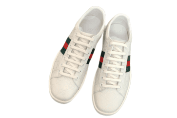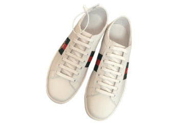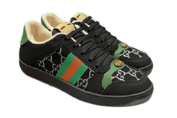 - Ace Sneakers: הסניקרס האייקוניות של גוצ'י, המוכרות בזכות הפסים הירוק-אדום והלוגו הכפול G. לעיתים מעוטרות בעיצובים ייחודיים כמו דבורים, נחשים וכוכבים.