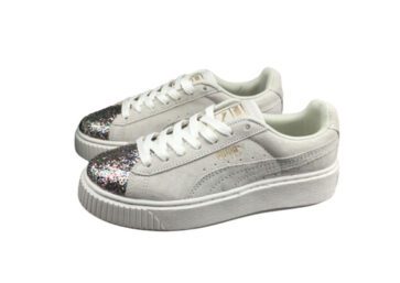 נעלי פומה- Puma platform shoes top pog leather gold head silver hesd frosted hesd flash drill bit-Hit Grey