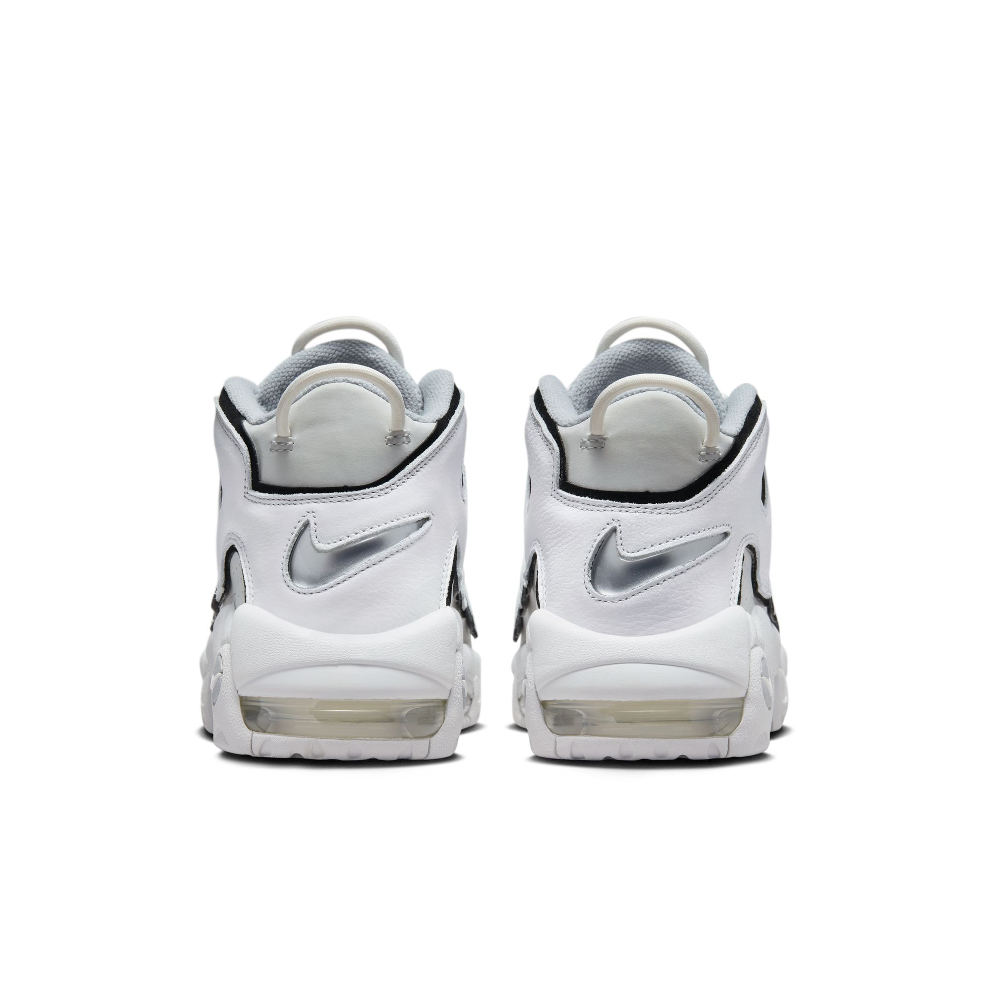 NIKE AIR MORE UPTEMPO ’96 סניקרס לגברים בסיס משולב בסוליית גומי חיצונית . כיתוב בצידי הנעל. יחידות נראות לעין בסוליה.
