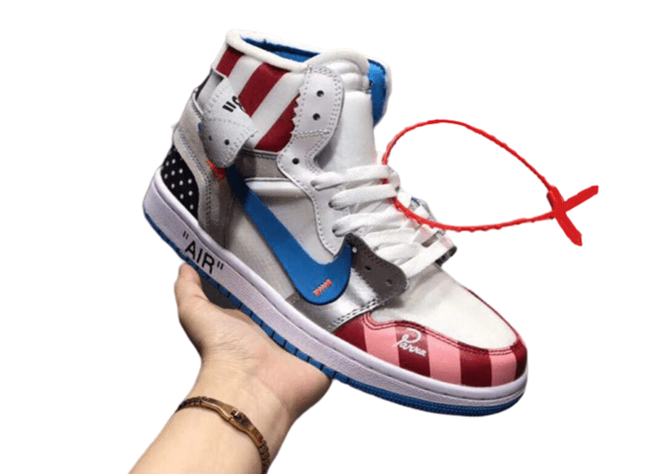 נעלי נייק-Nike air force 1 high WHITE-BLACK-BLUE LOGO