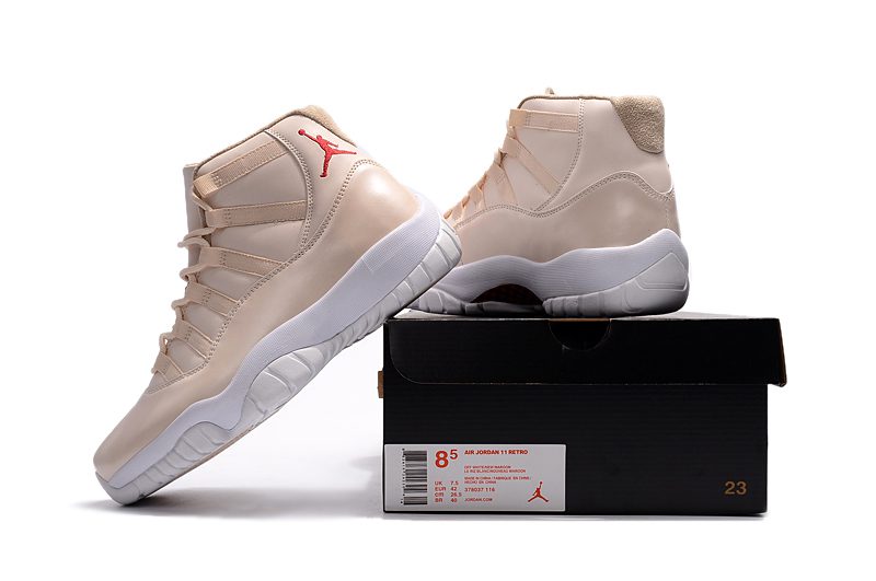 NIKE Air Jordan XI 11 Retro Creamy White Maroon Men Shoes