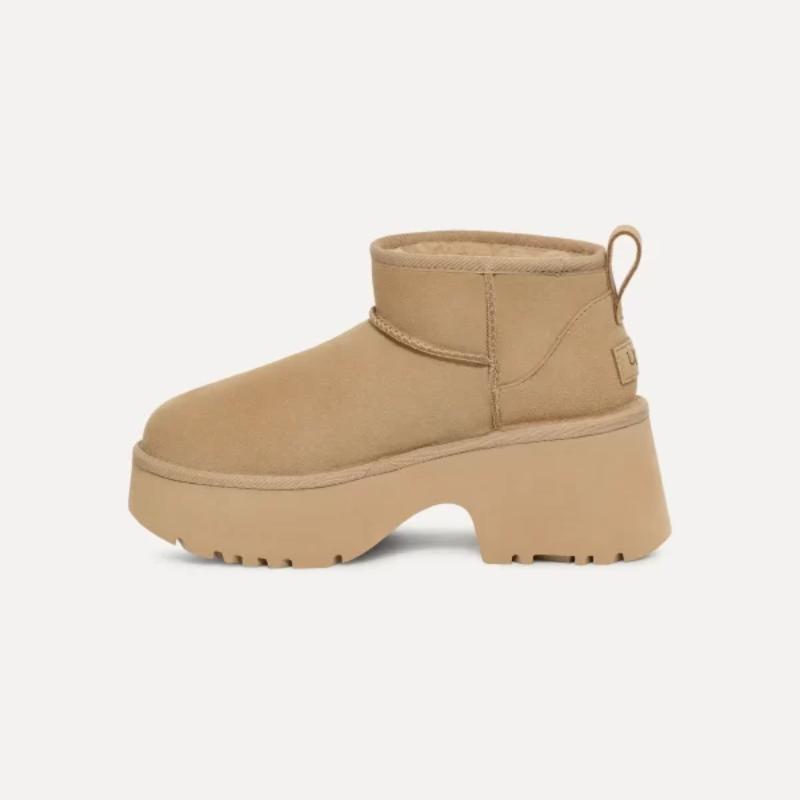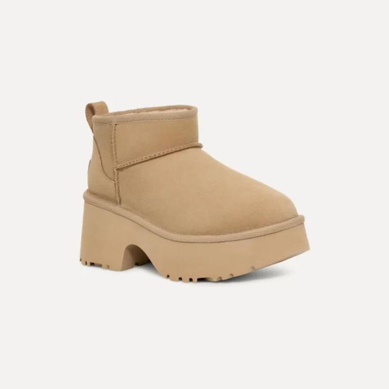 הדגם החדש והמושלם של נעלי UGG מקולקצית 2023 כפכפי האג (UGG) בשילוב סוליית פלטפורמה בגובה 4 ס"מ. עשוי עור בשילוב פרוות כבשים משובחת