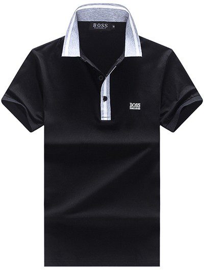 בוס-HUGO BOSS POLO TSHIRT MEN’S – Black & White Gray Border