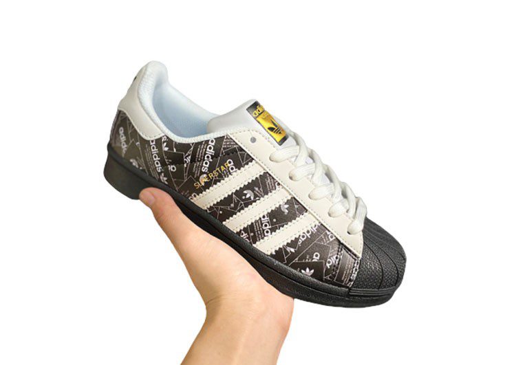 נעלי אדידס-ADIDAS Stan Smith – Black-Logo Print & Gold Logo