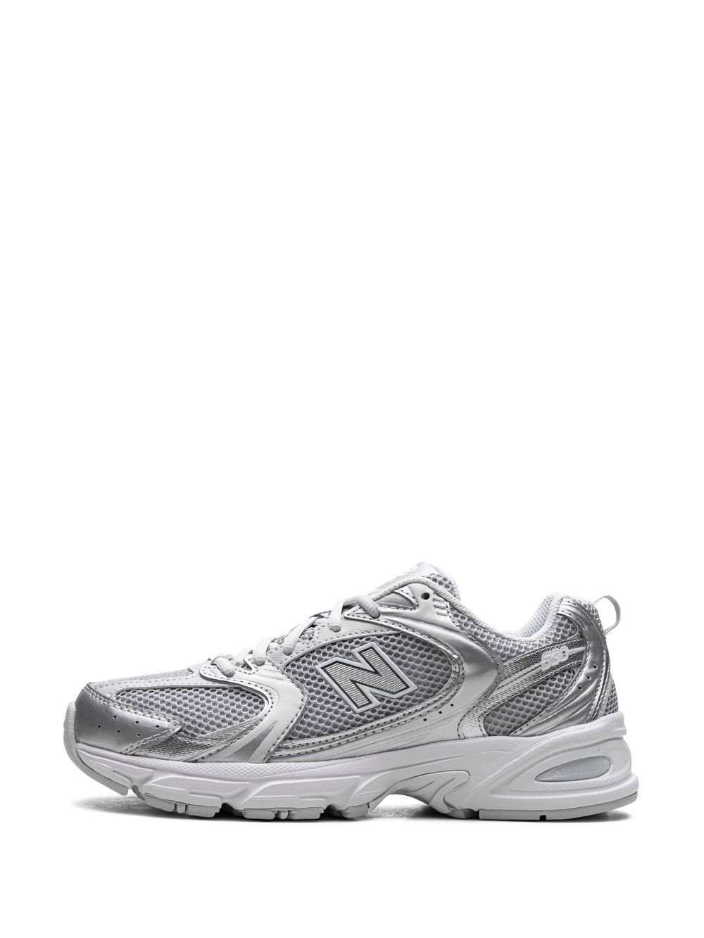NEW BALANCE 530 סניקרס לנשים וגברים יוניסקס הכולל את סמל המותג ניו באלאנס, שרוכי קשירה, לשונית נמוכה ומרופדת, סוליית גומי אלסטית, חלק עליון עשוי מעור עם תפירות ורשת משתלבת.