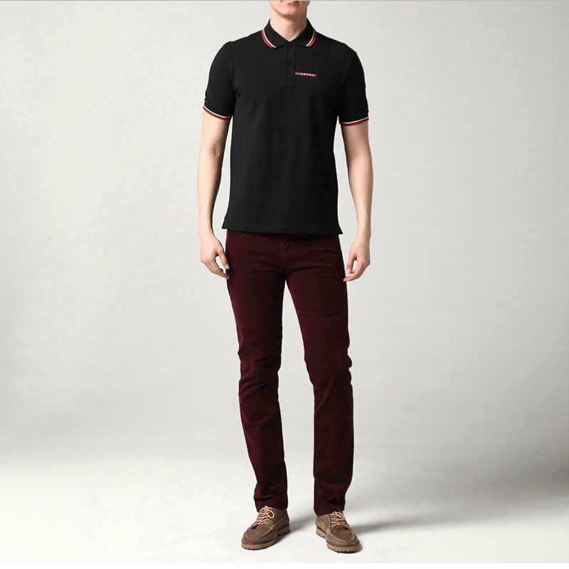 פראדה-PRADA TSHIRT POLO SHORT MEN – Black & White Red Border